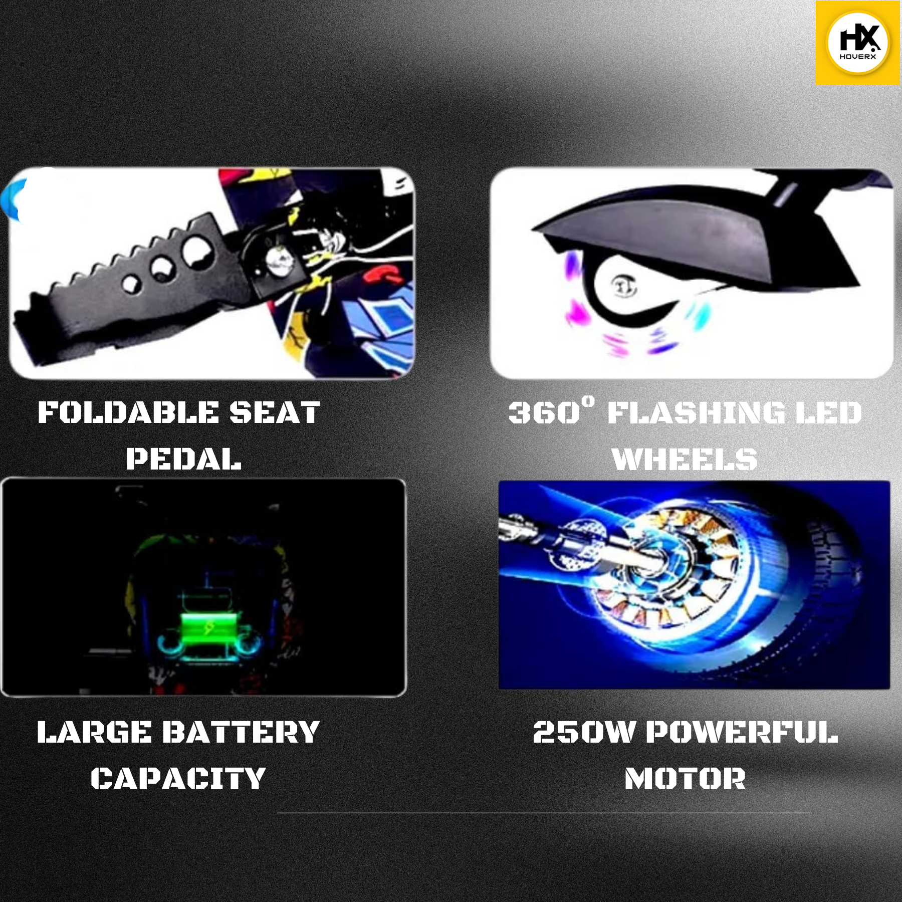 Get noticed with built-in Bluetooth speakers, vibrant LED headlights, and a push-button horn. Ride loud, shine bright, and let everyone see you coming!
