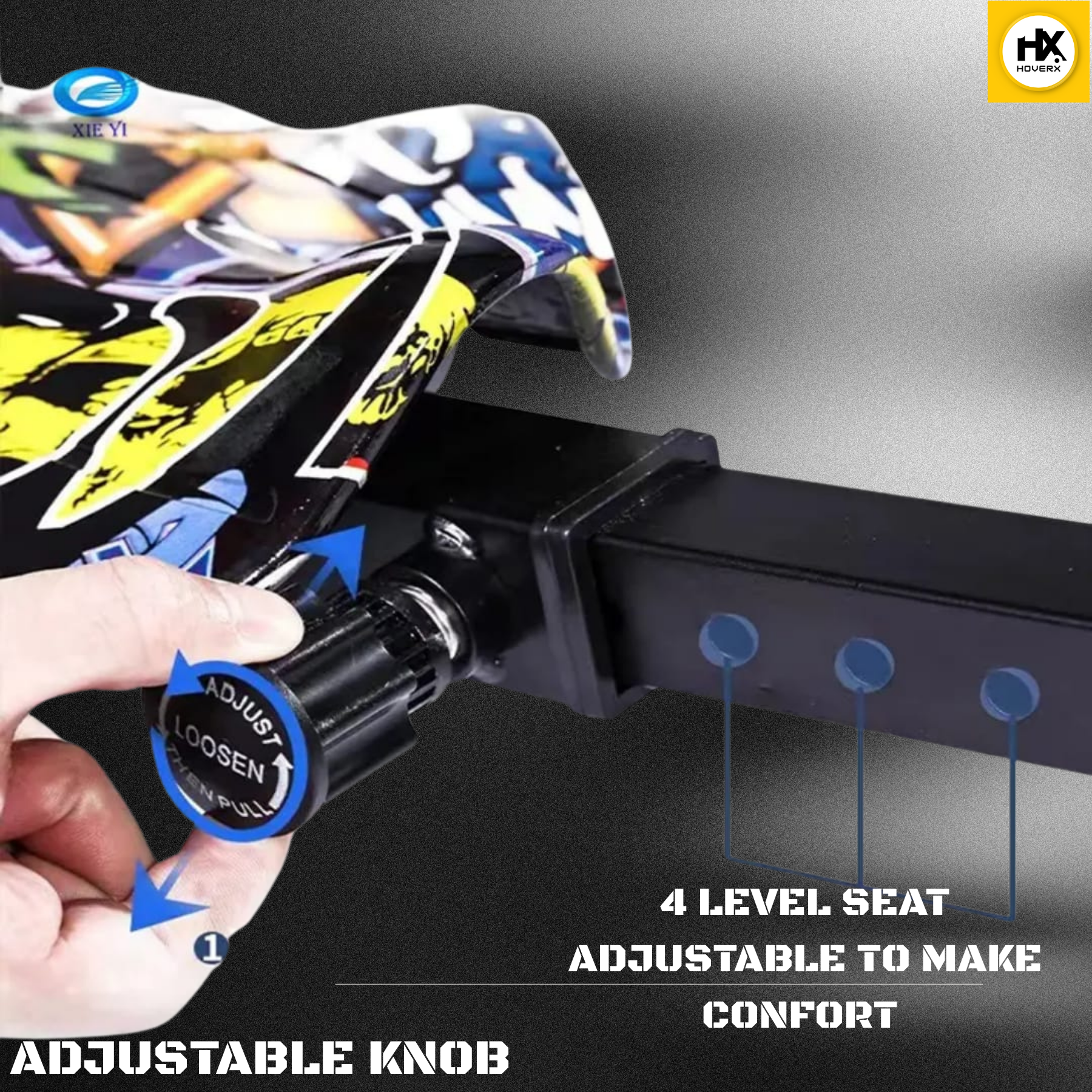 With an adjustable frame offering 4 different length settings, this ride is suitable for both kids and adults. Customize your experience for ultimate comfort while you drift!